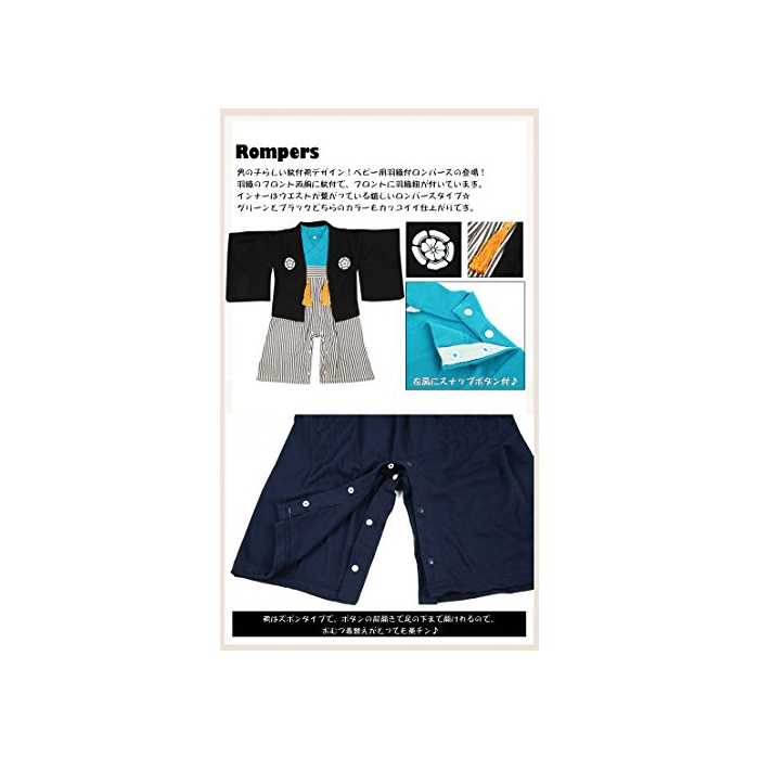 문포함 하카마(서는 물다)바람 베이비 하오리 부착 롬퍼스(rompers) 【247153】90cm 블랙