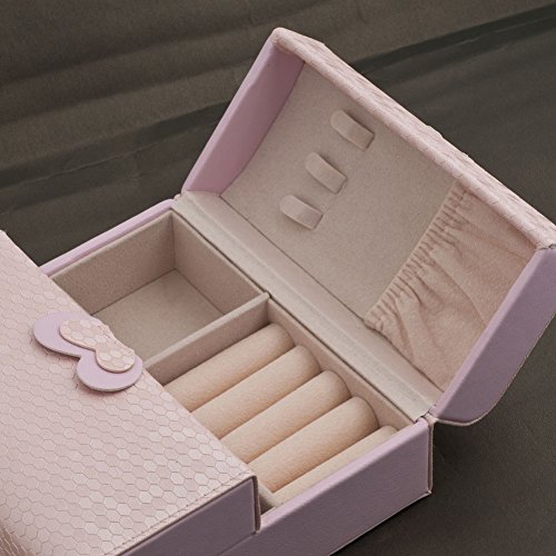 -. Feature : Material: Deluxe synthetic leather exterior(not genuine leather but premium synthetic PU leather)+Velvet lining+High Quality flannel interior / Simple and compact design with elegant outlook and could be used to storage collective / Size:150.00*150.00*65.00mm / Great for carrying small jewelry (earrings, rings, necklace, bracelets, etc) when travel / Welcome to visit our store and find jewelry boxes in different color, size and design for your love and yourself.