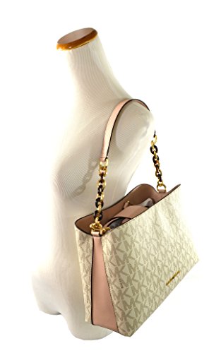 -. Brand : -. Color : White -. Department : womens -. Feature : Made of MK signature PVC with leather trims, handles and straps / Removable and adjustable crossbody strap, wear two ways, crossbody or over the shoulder / Top snap closure with zipped middle compartment / Inside 1 zip pocket and 2 slip pockets / 11.5"L x 8.5"H x 4.5"D, chain strap drop 8.5" -. Model : 35F7GPAS3B -. ProductGroup : Shoes -. ProductTypeName : HANDBAG -. Size : Medium -. Title : Portia Large East West MK Signature Satchel Crossbody Bag Purse Tote Handbag