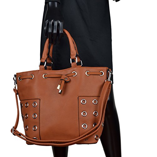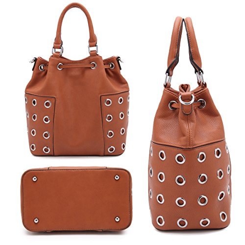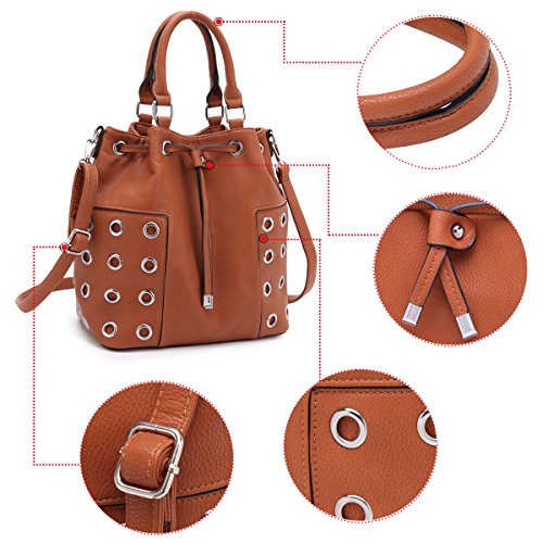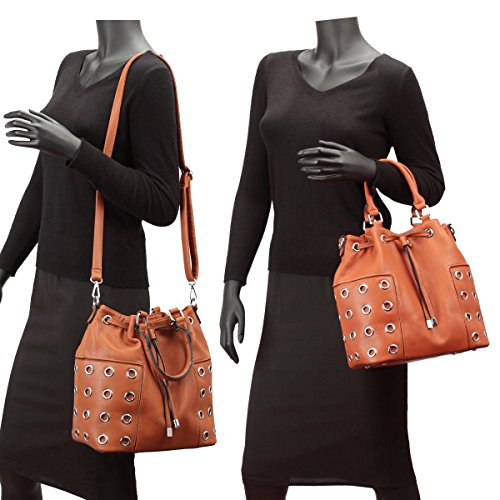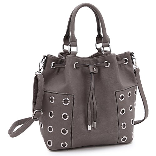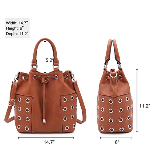 STYLE: Bucket bag features distressed finish, unique with grommet design, spacing inside and a drawstring with zip closure.