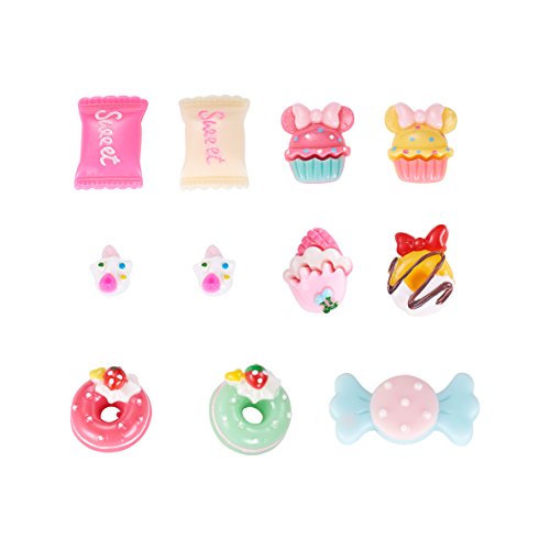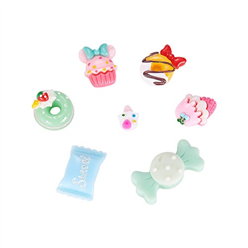 Pandahall 50pcs Mixed Color Candy & Cake Resin Cabochons Food Flat Back DIY Nail Decoration Cell Phone Ring Necklace Ring Pad Base Making