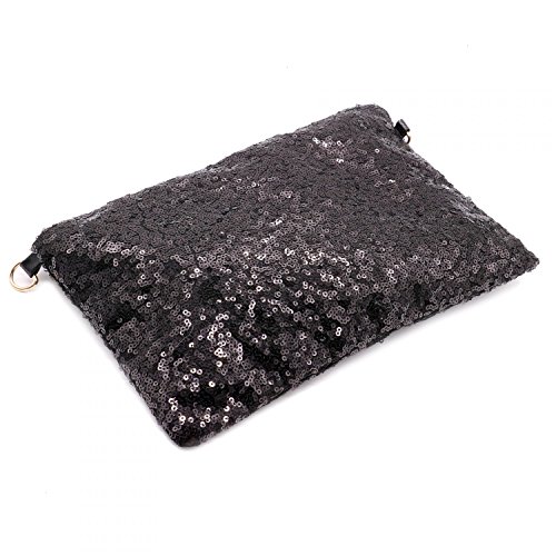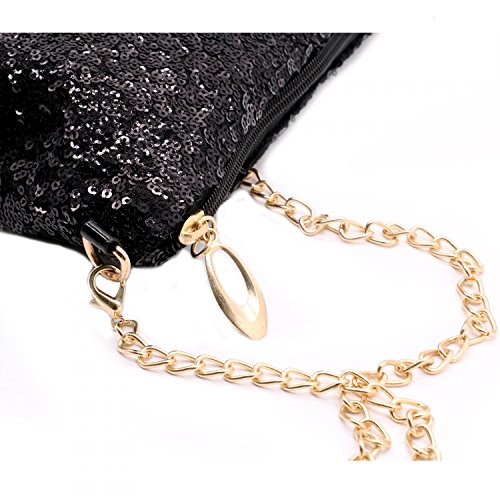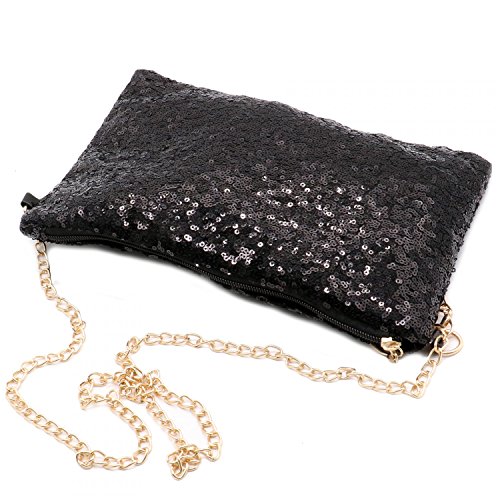Rugjut Sparkly Sequin Handbag Lady Party Black Evening Clutch Shoulder Bag