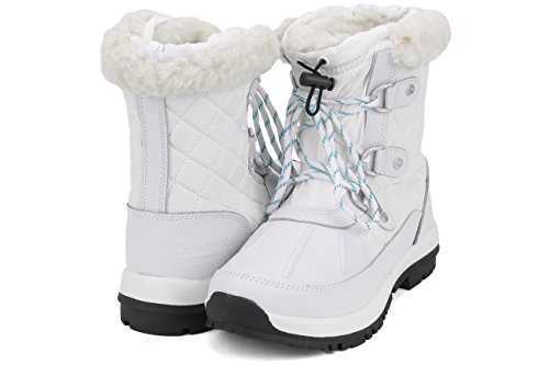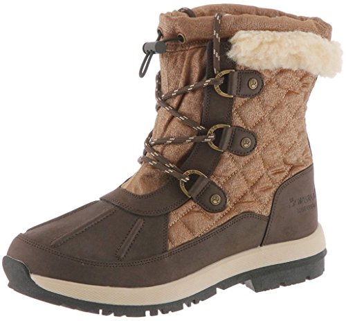 The 6.5'' tall Bethany boot is waterproof made with Nylon/PU upper. It's so cute and fun, you won't want to wait for the snow to wear them! Wool blend collar and lining with sheepskin footbed. Material: Nylon, Polyurethane.Feature