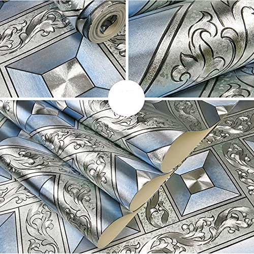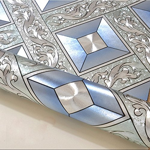 -. Title : QIHANG Luxury Silver Foil Mosaic Square Lattice Background Flicker Wallpaper Gold Leaf Wallpaper Modern Roll/hotel Ceiling/decorative Wallpaper Roll Silver&Blue Color 1.73' W x 32.8' L=57 sq.ft