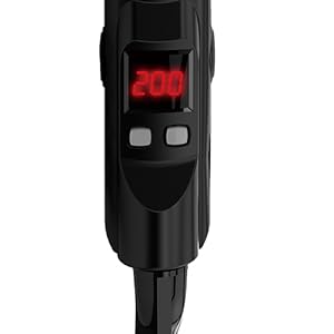 ●温度上昇をデジタルディスプレイでリアルタイムに確認できます。温度は5℃単位で微調整が可能。自分の髪質に合わせたぴったりの温度設定が可能で、ダメージを最小限に。