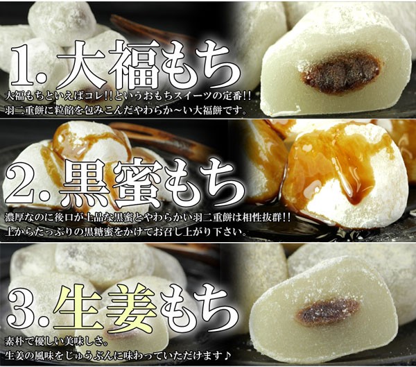 ※黒蜜もちには、「黒蜜」がついていますのでかけてお召し上がり下さい。
