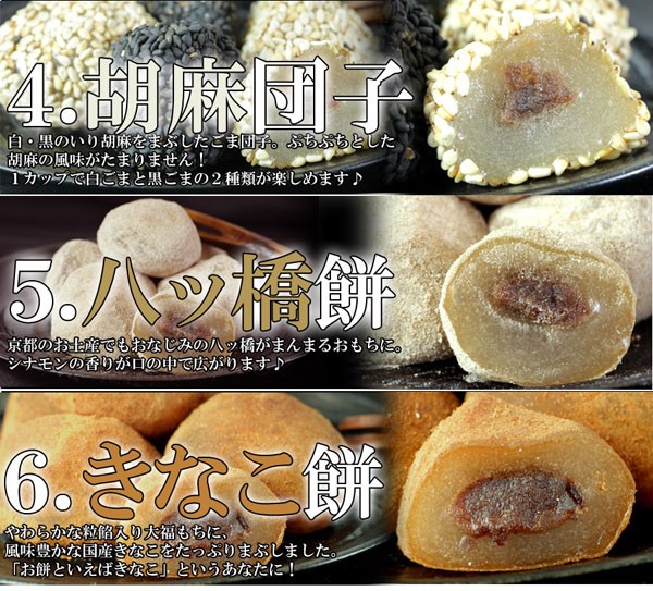 原材料 砂糖、餅粉、餡、水あめ、黒糖蜜、コーンスターチ、きな粉、胡麻、