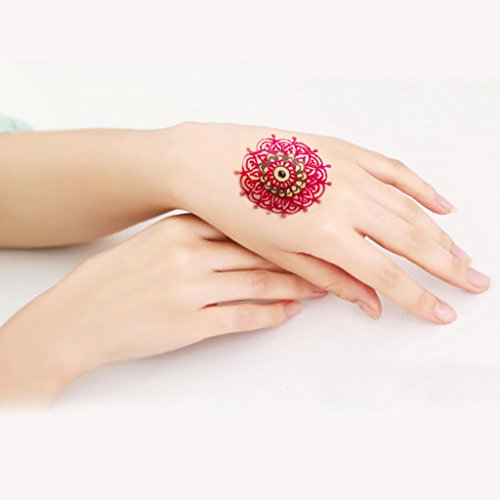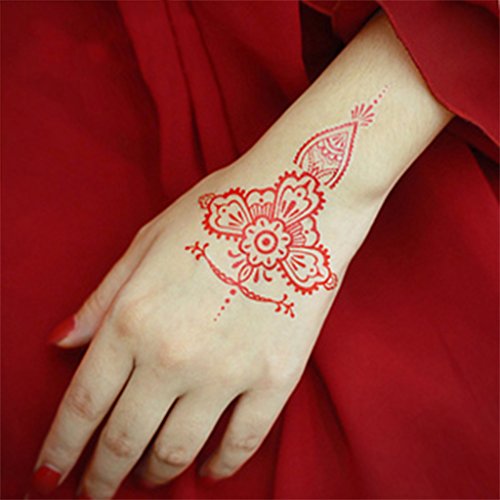 - ❤LASTING AND WATERPROOF: Different color henna has different keep time. The brown henna pattern can last in 7-15 days; the black can last in 3-5 days;the other colors can last in 3-4 days. After it dry, it can be waterproof.