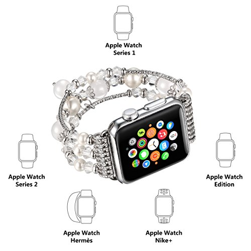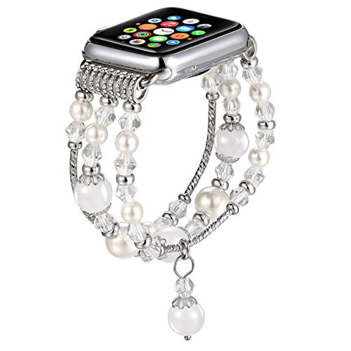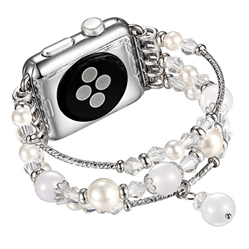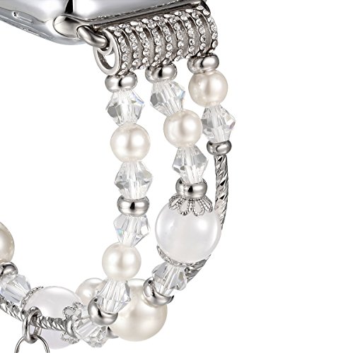 Fastgo Apple Watch Bracelet, Luxury White Beaded Natural Stone Band Replacement iWatch Strap Women (White - 38mm)