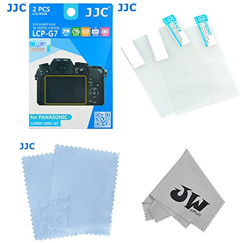 JW LCP-G7 2 Kits Low Reflection Anti-smudge High Transmission Perfect Cutting LCD Guard Film Display Screen Protector For PANASONIC LUMIX DMC-G7 + JW emall Micro Fiber Cleaning Cloth