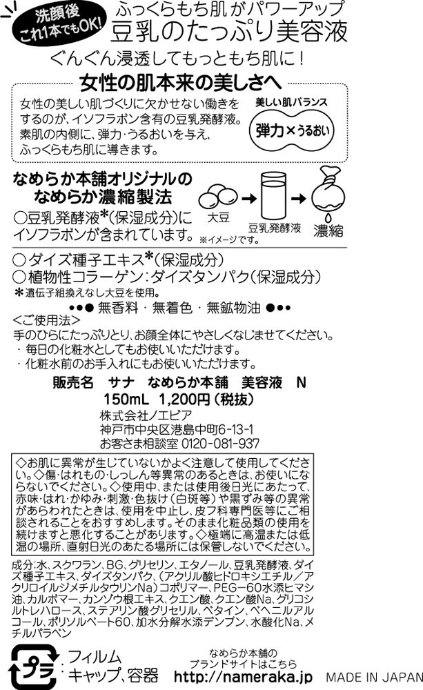 SANA Nameraka Isoflavone Facial Essence 6.4 Ounce