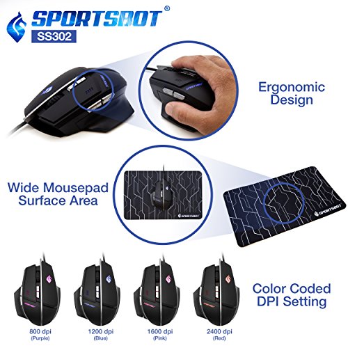 -. Title : SportsBot SS302 4-in-1 LED Gaming Over-Ear Headset Headphone, Keyboard, Mouse & Mouse Pad Combo Set w/ 6 Programmable Macro Keys, 3 Macro Modes, 40mm Speaker Driver, Microphone