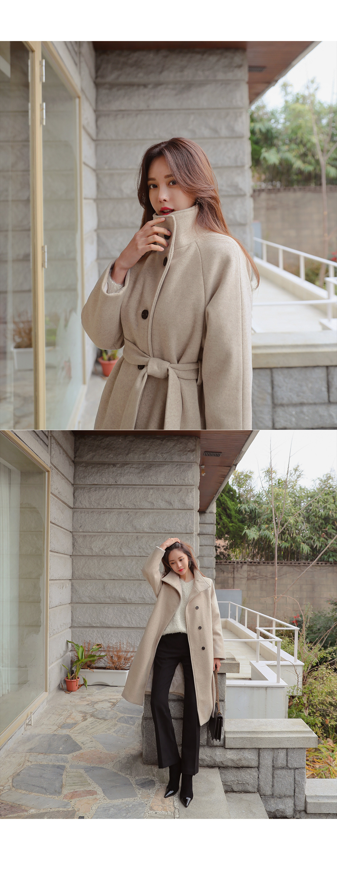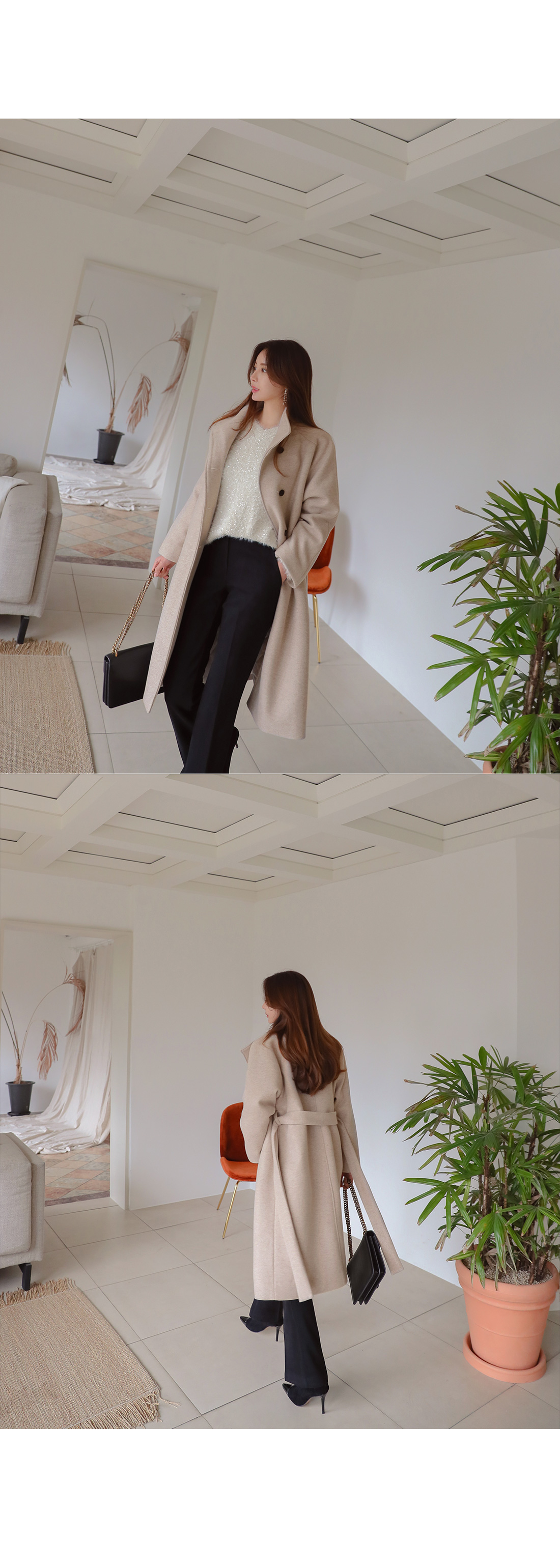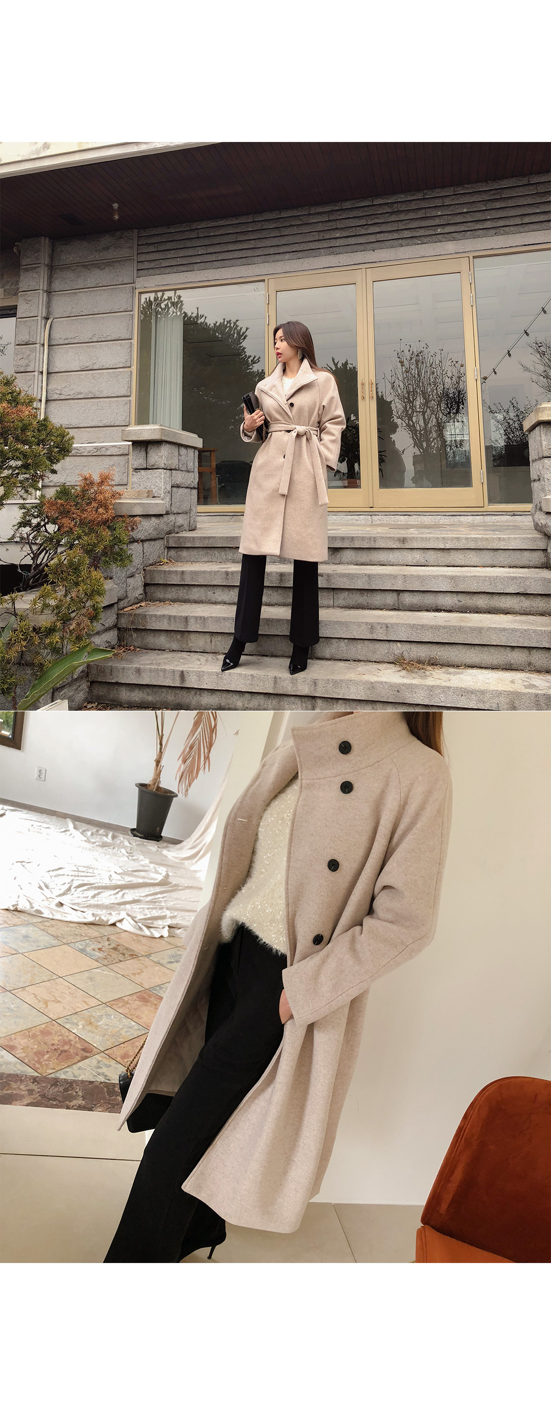 MD COMMENT 고급스러운 느낌이 느껴지는 하이넥 롱 코트를 소개해드릴게요-!목을 깜싸주는 하이넥으로 따로 머플러를 하지않아도 보온성을 챙겨주면서여유있는 핏에 롱한 기장감으로 체형커버 효과를 준답니다.허리 스트랩SET로 잘록한 허리라인 연출이 가능하구요,오픈했을때와 클로징했을때의 느낌이다른 세가지 연출이 가능한 코트에요-!오픈했을때 카라가 자연스럽게 떨어지면서캐주얼한 느낌을 주구요 클로징했을때는 단정하면서 우아한 느낌을 느낄 수 있는 코트랍니다.원단의 울 함량으로 부드러운 터치감을 느끼 실 수 있구요안감의 누빔 처리로 보온성을 또한번 챙겨주었어요.자연스럽게 떨어지는 어깨라인이 여리여리한 느낌을 살려주며슬랙스나 데님팬츠는 물론 원피스,스커트등다양한 하의와 스타일링 가능한 코트에요-!분위기있는 코트를 원하신다면 얼른 초이스하세요!COLOR/SIZE 오트밀,코코아,블랙FREEMODEL FITTING 오트밀/FREE