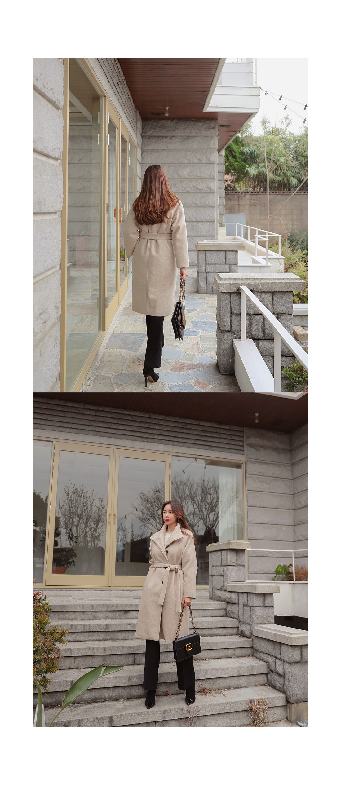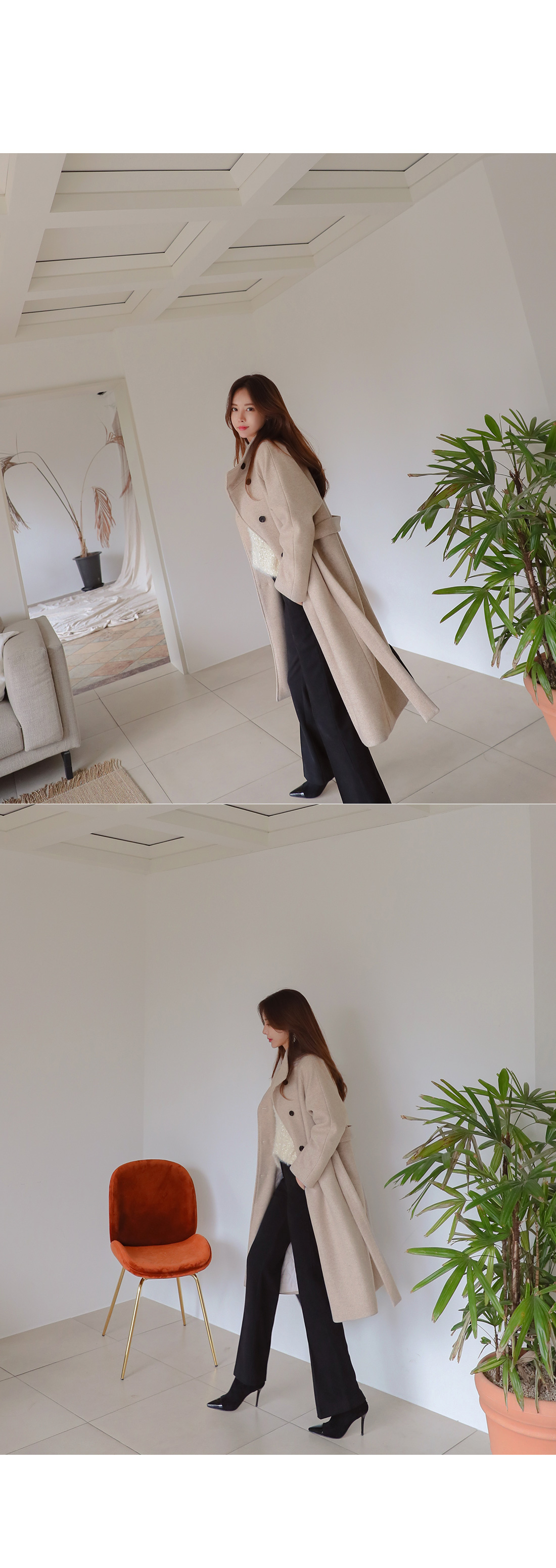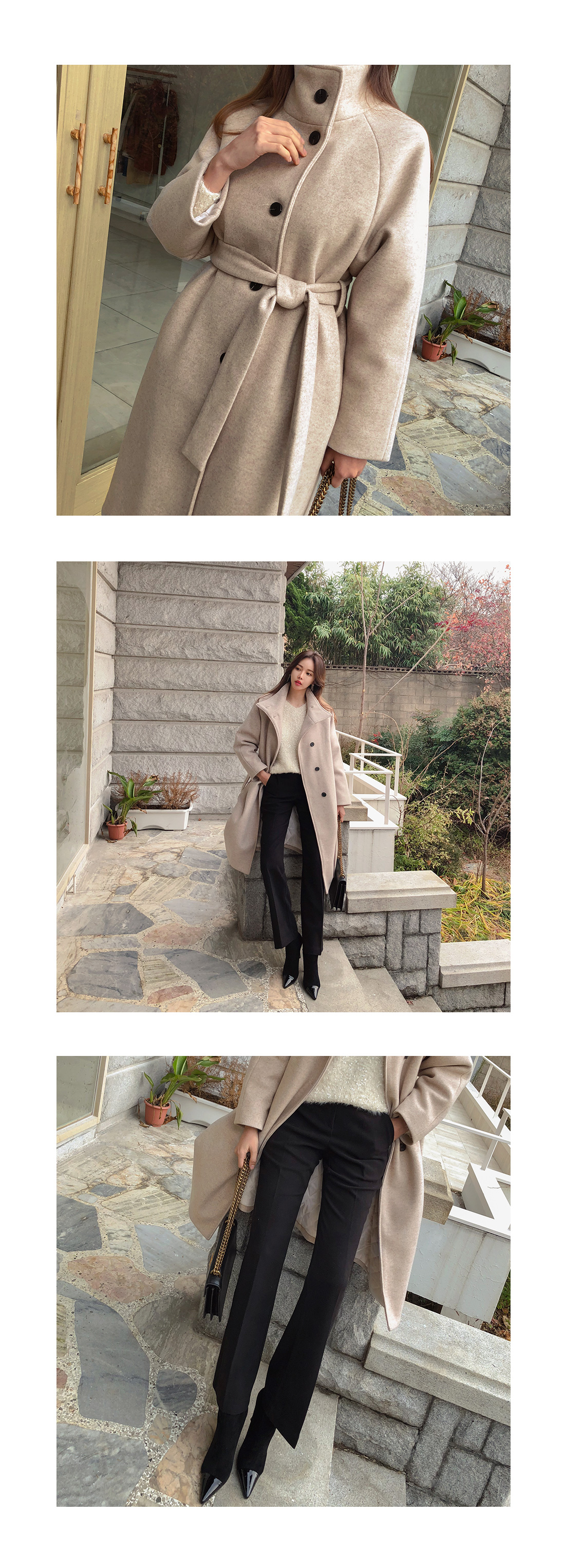 MD COMMENT 고급스러운 느낌이 느껴지는 하이넥 롱 코트를 소개해드릴게요-!목을 깜싸주는 하이넥으로 따로 머플러를 하지않아도 보온성을 챙겨주면서여유있는 핏에 롱한 기장감으로 체형커버 효과를 준답니다.허리 스트랩SET로 잘록한 허리라인 연출이 가능하구요,오픈했을때와 클로징했을때의 느낌이다른 세가지 연출이 가능한 코트에요-!오픈했을때 카라가 자연스럽게 떨어지면서캐주얼한 느낌을 주구요 클로징했을때는 단정하면서 우아한 느낌을 느낄 수 있는 코트랍니다.원단의 울 함량으로 부드러운 터치감을 느끼 실 수 있구요안감의 누빔 처리로 보온성을 또한번 챙겨주었어요.자연스럽게 떨어지는 어깨라인이 여리여리한 느낌을 살려주며슬랙스나 데님팬츠는 물론 원피스,스커트등다양한 하의와 스타일링 가능한 코트에요-!분위기있는 코트를 원하신다면 얼른 초이스하세요!COLOR/SIZE 오트밀,코코아,블랙FREEMODEL FITTING 오트밀/FREE