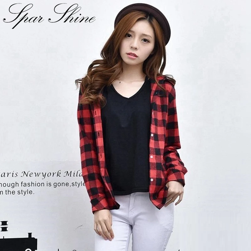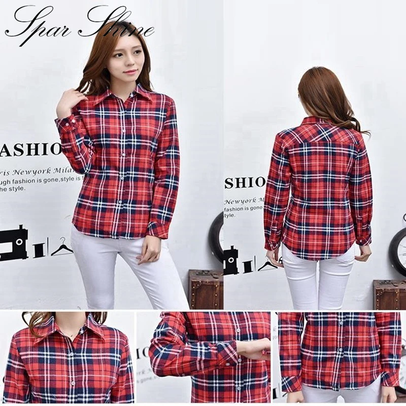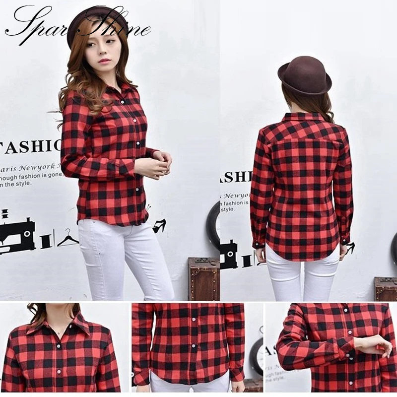chiffon blouse clothes for women: off shoulder top plaid shirt female plaid shirt female plaid Solid