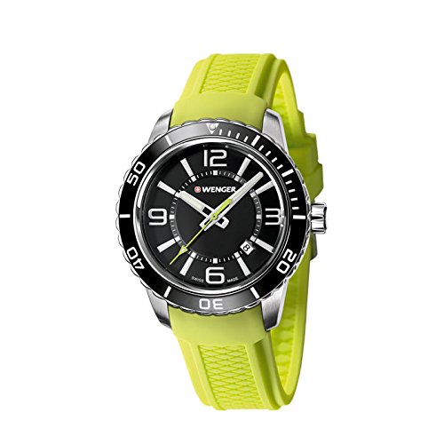 -. Title : Wenger 01.0851.115 Black Dial Green Lime Rubber Strap Men's Watch