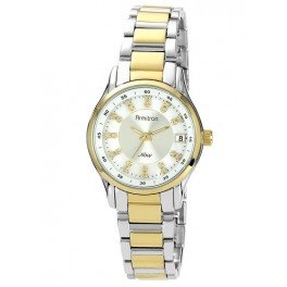 -. Feature : Ladies two-tone bracelet watch / Bezel is in a gold-tone / A white round dial, / Date at 3 o'clock