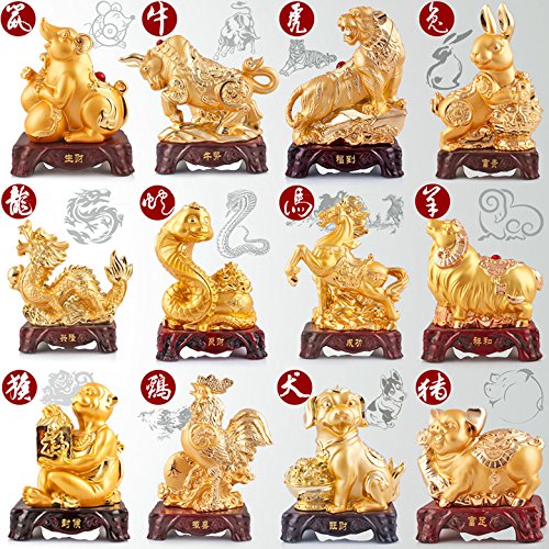 -. Feature : The Chinese animal zodiac, or shengxiao (born resembling), is a repeating cycle of 12 years, with each year being represented by an animal and its reputed attributes. Traditionally these zodiac animals were used to date the years.In order, the 12 animals are: Rat, Ox, Tiger, Rabbit, Dragon, Snake, Horse, Goat, Monkey, Rooster, Dog, Pig. / animal / Size: 5.4"(L) x 3.5"(W) x 6.5"(H) . Made of resin like gold / It will come with a common gift box.The perfect gift for any occasion. / 100% SATISFACTION AND MONEY BACK GUARANTE: Just try our products and if you don't absolutely love them let us know and we will refund your purchase P.R.Ice NO QUESTIONS ASKED!