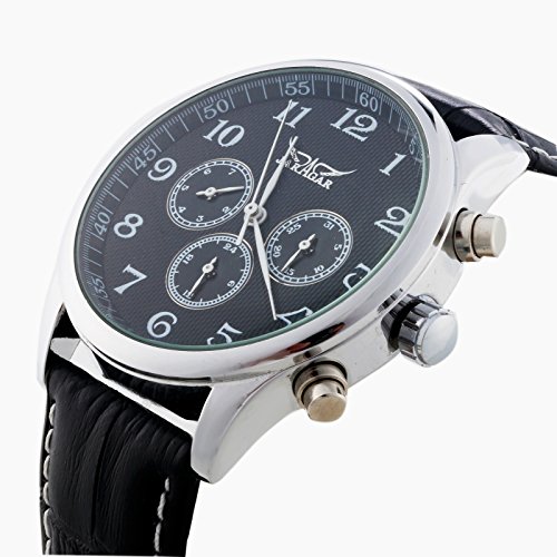 -. Binding : Watch -. Brand : GuTe Mechanical -. Department : Mens -. EAN : 6661201360528 -. Feature : Vintage style wrist watch for mens, boys / black dial with white hands / 6 hands design day, date functions, 3 button on the right / glass back case can see how it works / black PU watchband with normal quality. But you can change to better one by yourself -. Label : GuTe Trade -. Manufacturer : GuTe Trade -. MPN : 189 -. PackageQuantity : 1 -. PartNumber : 189 -. ProductGroup : Watch -. ProductTypeName : WATCH -. Publisher : GuTe Trade -. Studio : GuTe Trade -. Title : Gute Vintage All Black Wristwatch 6hands Casual Mechanical Self-wind Watch Day Date