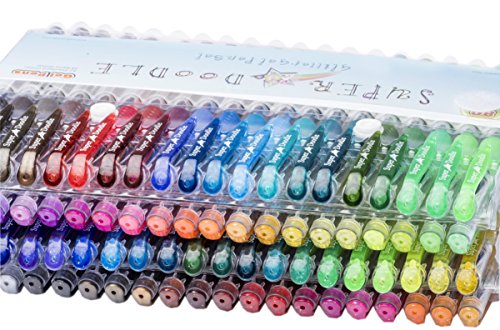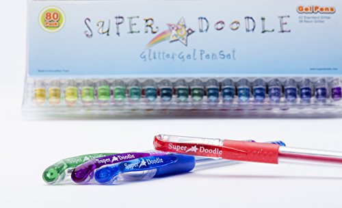 Super Doodle Glitter Gel Pens - 80 Unique Glitter Colors - Artist Quality Gel Pen Set for Adult Coloring Books, Arts and Crafts for Kids, Scrapbooks, Greeting Cards, and Drawing