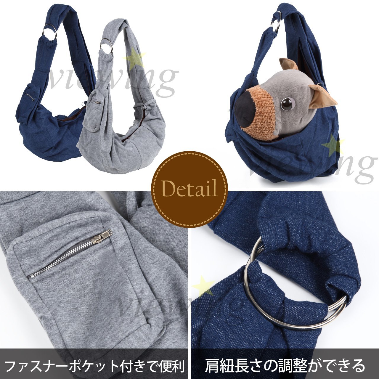 Mini pocket with adjustable shoulder straps viewing dogs ring