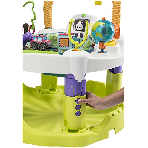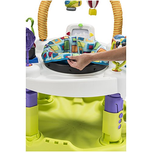 ReleaseDate : 2015-11-19 Studio : Evenflo Publisher : Evenflo Binding : Baby Product Product Description The ExerSaucer Triple Fun World Explorer, a safe alternative to walkers, allows children to explore their world and expand their mind with a variety of age-appropriate toys with lights, sound and music to help your baby achieve important developmental milestones. Unique developmental toys include a story book pod, featuring 12 pages, 36 different sounds and 4 languages. The electronic toy bar has two pull toys that make lights and sounds. A soft cushioned mat is included for tummy play. The rock, spin and bounce actions provide your baby with plenty of exercise to strengthen legs, back and neck muscles. Offering parents extended use with three stages of use and easy conversion, your baby can use this product to learn and play from newborn to 24 months. Includes three height positions, a built in carry handle and washable seat pad. 0