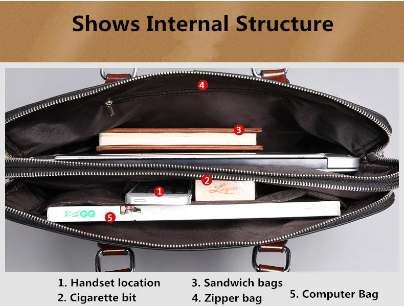 Internal structure:Internal interlayer bags+Zipper bag+Cell phone pocket