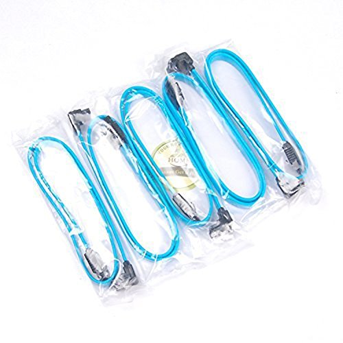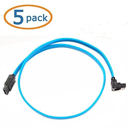 Sata Cable, WOVTE Blue 18-Inch SATA III 6.0 Gbps Cable with Locking Latch and 90-Degree Plug Pack of 5