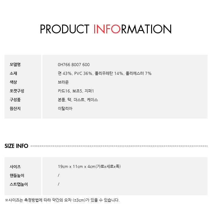 사이즈사이즈 : 19cm x 11cm x 4cm(가로x세로x폭)