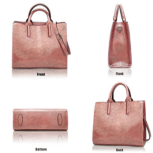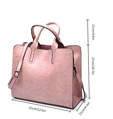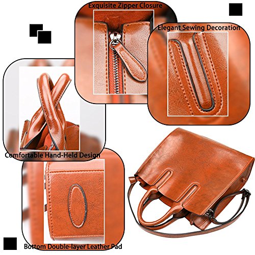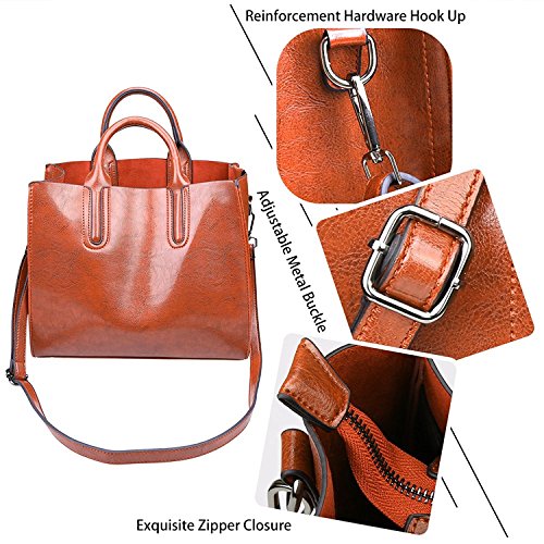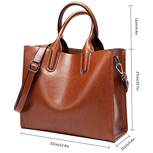 -. Feature : * SOFT & DURABLE : High quality greased Leather with black color hardware; heavy duty zippers and fabric lining; adjustable strap to prevent slidding off your shoulder. Every stitching joints have been reinforced for durability. / * DIMENSIONS --- 12.6"W x 10.6"H x 4.5"D, Height of Handle: 4.5". the weight is 1.7 lb. / * WELL ORGANIZATION --- Two (2) Inner Zipper Pocket for Holding Wallet or Cell Phone , Two (2) Interior Open Pockets for Keys or Card and Two (2) Compartments for Large Stuff. / * SPECIAL 3-WAY CARRYING --- Convertible versatile bag! You can carry it as a handbag/single shoulder bag/messenger bag as there is a long detachable shoulder strap. / * LARGE CAPACITY --- This handbag can accomodate your books, small makeups, wallet, umbrella and so on. Elegant high-end design goes well with any outfit in any occasions.