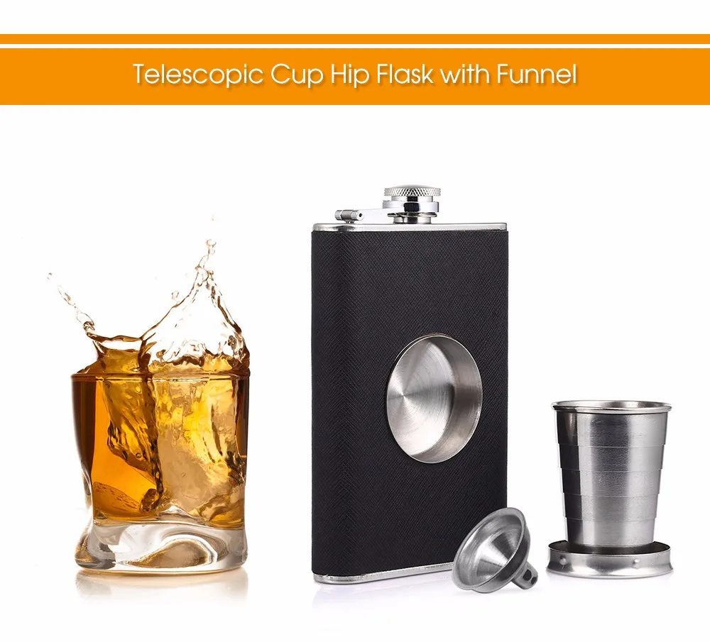 Package Contents:1 x Hip Flask, 1 x Built-in Telescopic Cup, 1 x Funnel