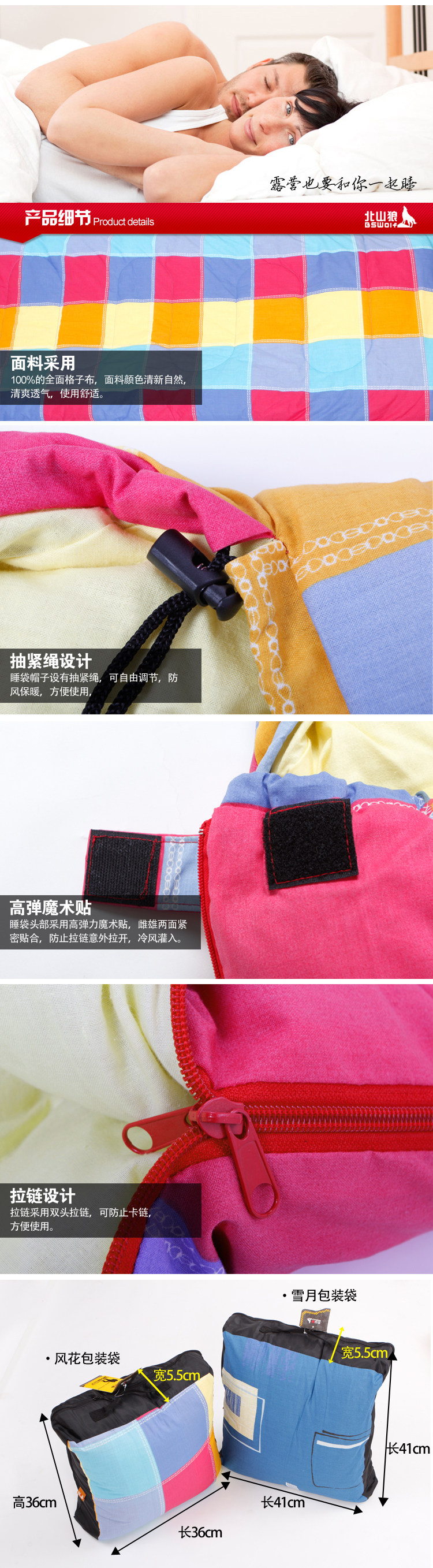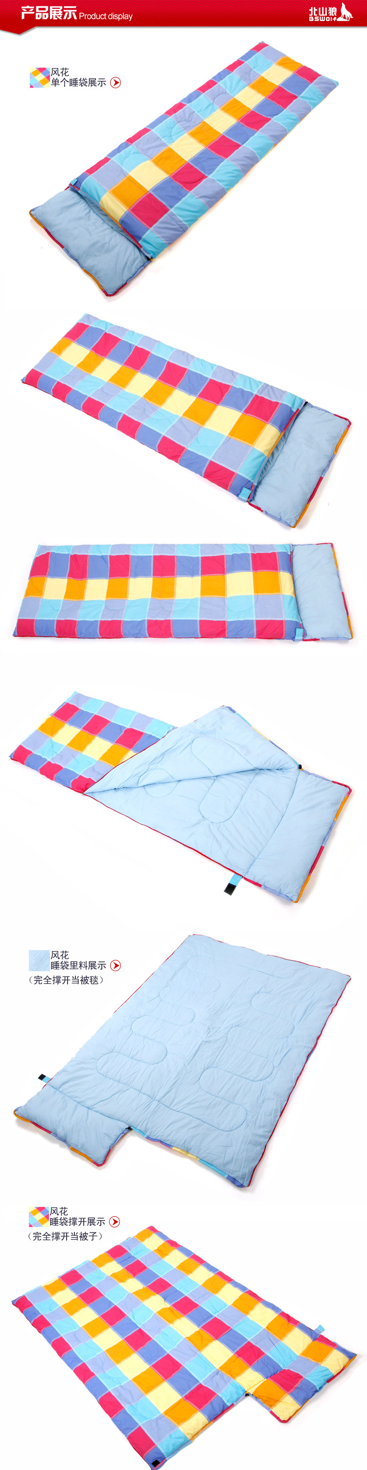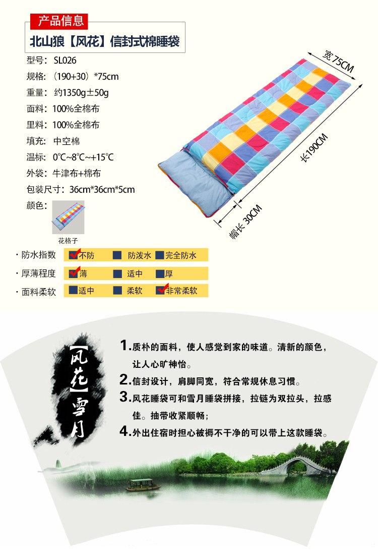 北山狼户外成人加厚睡袋秋春夏全棉保暖登山野营信封式旅行睡袋