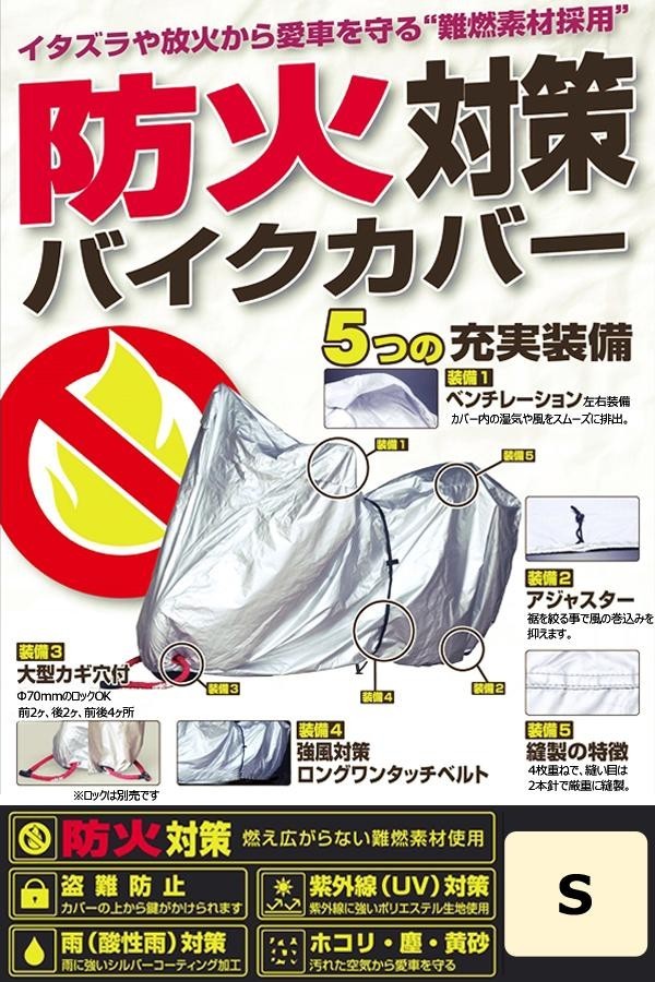 燃え広がらない難燃素材を使用、防火対策に最適なバイクカバーです。防火だけでなく、雨や紫外線、ホコリなどの汚れからもバイクを守ります。 |