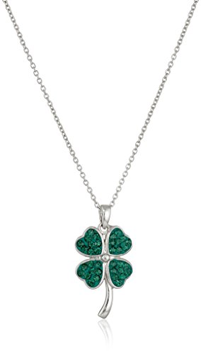Sterling Silver Swarovski Emerald Color Crystal Four Clover Pendant Necklace, 18"