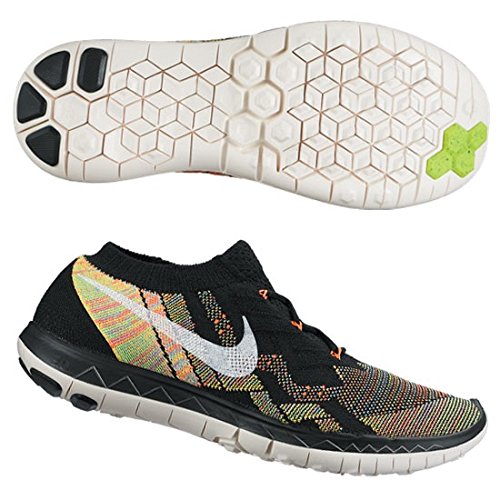 Nike Womens Free 3.0 Flyknit Running Shoes, Black/Sail/Hyper Orange/Volt (7.5)