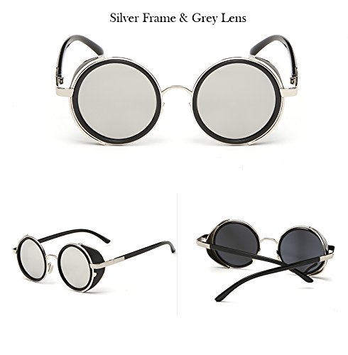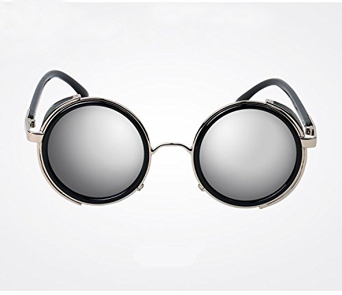 -. Binding : Eyewear -. Brand : JJLHIF -. Color : Black/Grey/Silver -. EAN : 0612677298071 -. Feature : 1 x round steampunk sunglasses + 1 x case for glasses + 1 x glasses cloth + 1 x glasses pouch / The retro round sunglasses is UV protection, well protect you from being hurt by UV ray when playing under sunshine / The vintage sunglasses is ideal for Costume & Play, cycling cruising Or half or open face helmets / The retro blinder is made of top quality durable ABS & Metal alloy frame, polycarbonate lens / Lens Color: Grey / Frame Color: Silver -. IsAutographed : 0 -. IsMemorabilia : 0 -. Label : JJLHIF -. Manufacturer : JJLHIF -. MPN : JJLHIF -. PartNumber : JJLHIF -. ProductGroup : Sports -. ProductTypeName : OUTDOOR_RECREATION_PRODUCT -. Publisher : JJLHIF -. Studio : JJLHIF -. Title : Mens Womens Steampunk Sunglasses 50s Round Glasses Cyber Goggles Vintage Retro Style Blinder Silver Metal Frame & Grey Lens w/ Black Hard Case -. UPC : 612677298071