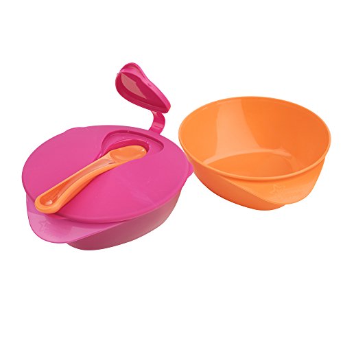-. Feature : 2 x bowls with leak-proof lid and spoon / Easy-scoop triangular base / Stay-clean spoon cover makes them ideal for travel / Dishwasher, microwave and sterilizer safe / Suitable for babies aged 7 months plus