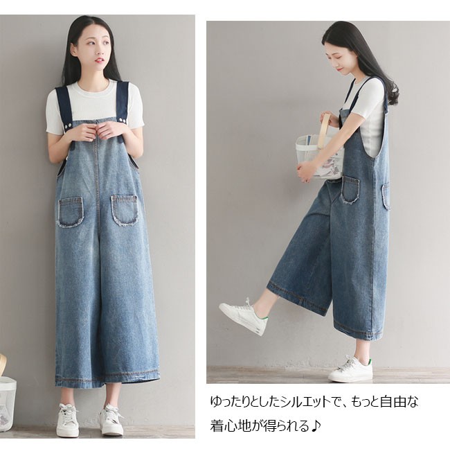 | 商品名 | デニムパンツ サロペットパンツ ワイドパンツ ガチョウパンツ レディース オールインワン 九分丈 カジュアル リラックス ゆったり 夏 秋 |