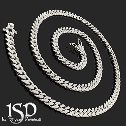 - Title : .925 Sterling Silver 6.5mm Solid Miami Cuban Curb Link Necklace Chain Rhodium Plated 24" - 30" (26 Inches)