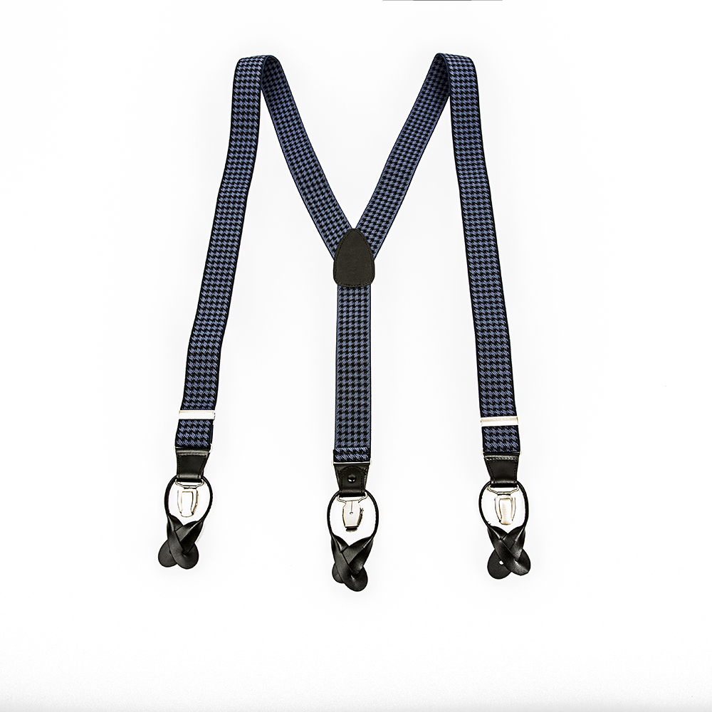 네이비 하운드 투스체크 천연가죽 멜빵(서스펜드)