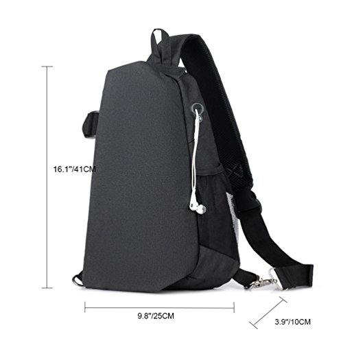-. Feature : Superior Material- Manufactured with high-grade waterproof oxford cloth fabric, exceedingly durable and wear-resistant. / Multiple Functions- With breathability, decompression, shock-proof resistance and other functions, allow you enjoy the soft, comfortable and skin-friendly wear. / Breathable Straps- Equipped with breathable padded cotton for back and shoulder straps, thickened mesh design and adjustable shoulder strap, can be used with a variety of ways. / High Performance- Sophisticated sewing, neat, tidy, solid and firm, with waterproof feature; also, the USB port, USB charging cable port and headphone cable port are easy for you to charge and listen to music. / Wide Application- Suitable for school, work, travel, leisure, climbing and other occasions, perfect provide all men and women with extraordinary enjoyment.