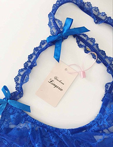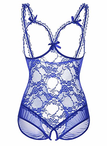 Vivilover Women's One-piece Teddy Sexy Lingerie Plus Size (US S=Tag M, Blue)
