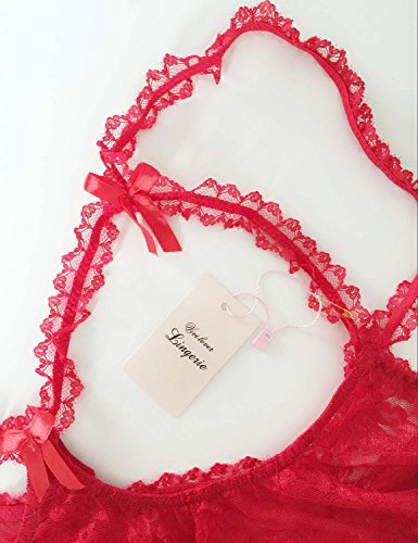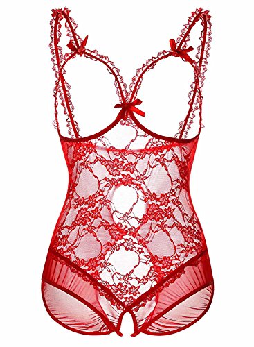 Vivilover Women's One-piece Teddy Sexy Lingerie Plus Size (US S=Tag M, Red)