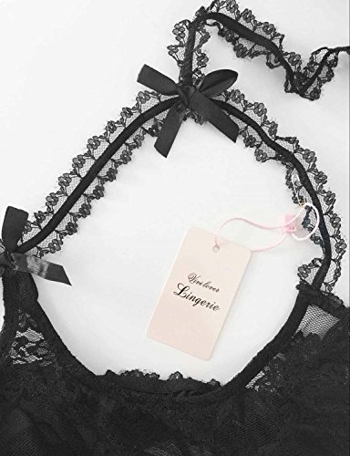 Vivilover Women's One-piece Teddy Sexy Lingerie Plus Size (US S=Tag M, Black)
