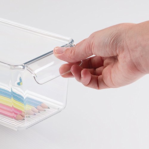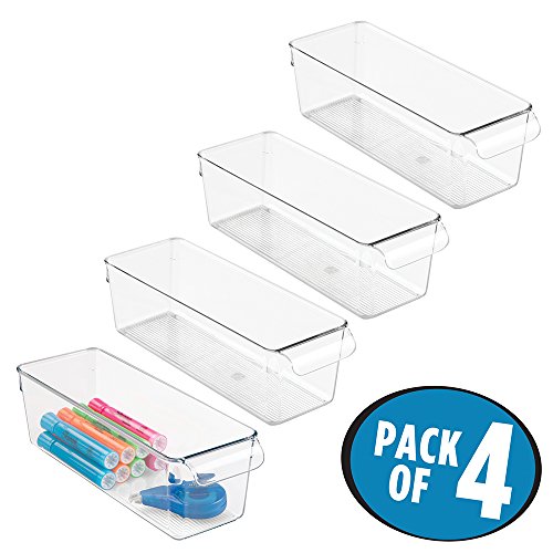 mDesign Office Supplies Desk Cabinet Organizer Bin for Pens, Pencils, Highlighters, Tape - Pack of 4, Small, Clear