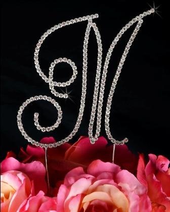 Unik Occasions Simply Elegant Crystal Rhinestone Letter-M Wedding Cake Topper, Silver