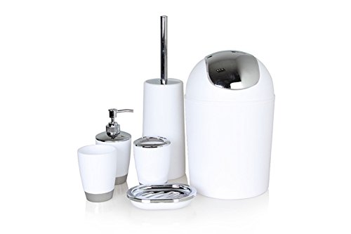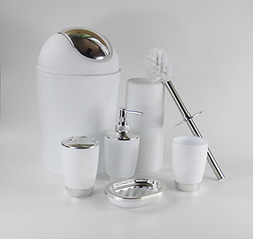 -. Title : Fashionclubs 6pcs Bath Vanity Accessories Set Included Dispenser,Toothbrush Holder,Tumbler Cup,Soap Dish, Trash Can,Toilet Brush