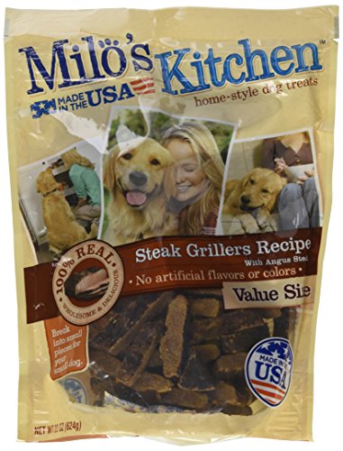 -. Binding : Misc. -. Brand : Milo's Kitchen -. EAN : 0079100518234 -. Feature : Tasty And Easy To Digest For Your Pet / Only Quality Materials Used In Big Heart Products / 100% Natural and Made in the USA -. Label : Milo's Kitchen -. Manufacturer : Milo's Kitchen -. Model : 64451823 -. MPN : DMF-367 -. PackageQuantity : 1 -. PartNumber : DMF-367 -. ProductGroup : Pet Products -. ProductTypeName : PET_SUPPLIES -. Publisher : Milo's Kitchen -. Size : 22 oz -. Studio : Milo's Kitchen -. Title : Milo's Kitchen Big Heart Pet Treats Grilled Steak, 22 oz -. UPC : 079100518234