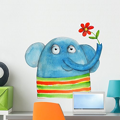 Elephant with Flower Watercolor Wall Mural by Wallmonkeys Peel and Stick Graphic (24 in W x 23 in H) WM362927