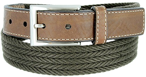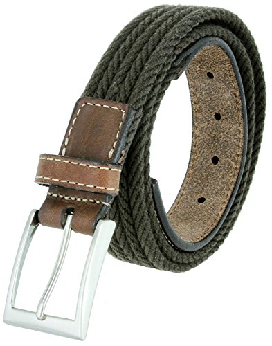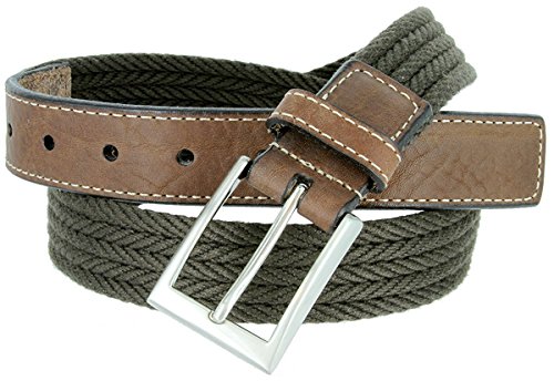(Hagora)/Accessories/Belts Buckles/DIRECT FROM USA/Hagora Men 1-3/8" Wide Brown Leather Olive Braided Cotton Nickel Buckle Belt